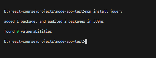 터미널에 npm으로 제이쿼리를 설치해봄