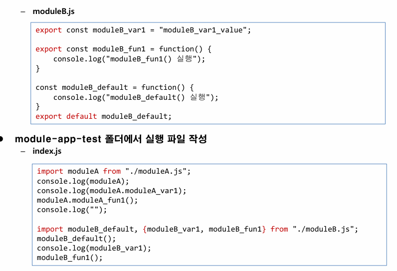 모듈B는각각 export , export default로 가져옴
