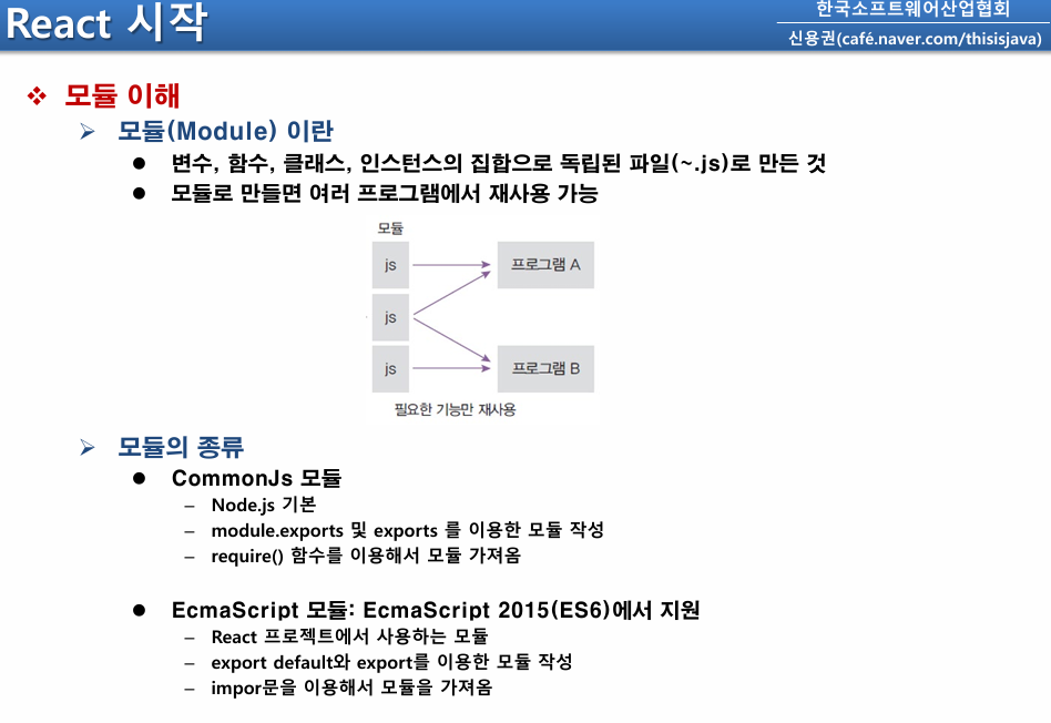 리액트의 모듈을 가져오는 방법을 알아야 한다.