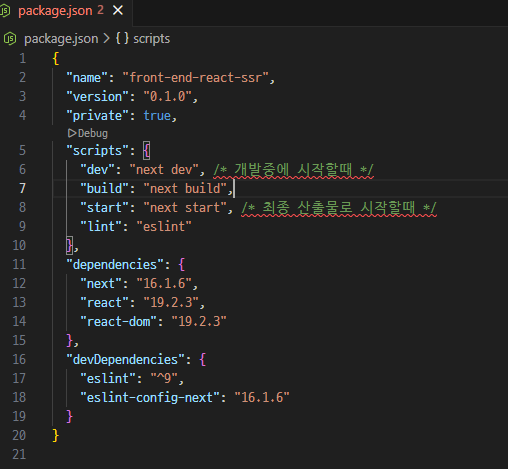 script에 dev가 있다