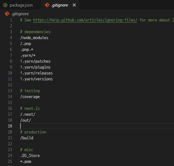 git ignore에는 node module 이랑 .next를 제외하는걸 넣어줌