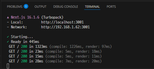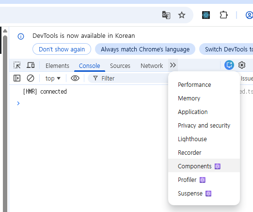 - Next.js 개발 서버와 브라우저가 WebSocket으로 연결되었다는 의미입니다.