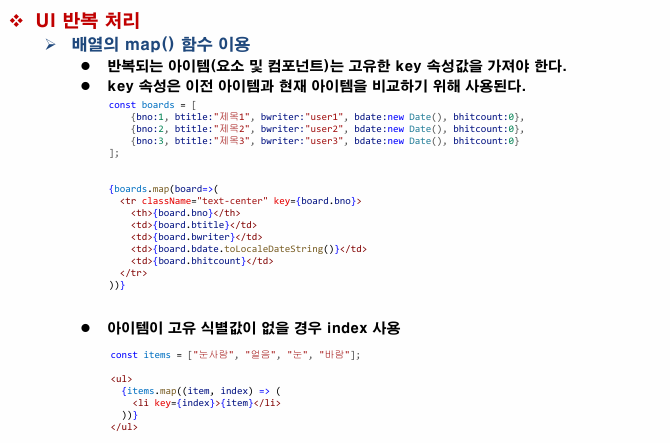 tr태그마다 고유한 키값이 있어야됨 안그럼 중복 남.