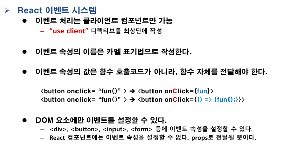 버튼에 함수 이벤트 처리하려면 무조건 클라이언트 컴포넌트여야한다.