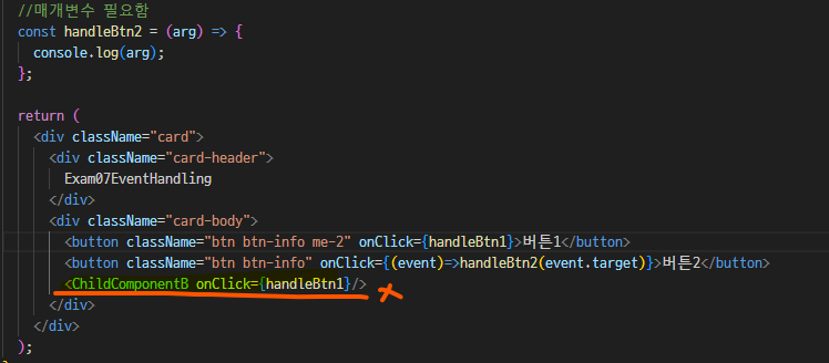 html에서는 onclick={}해도 되지만 리액트에서는 카멜스타일로 onClick해야된다.