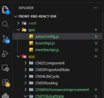 app 바깥에 apis폴더를 만들어서 axiosConfig.js를 만들어준다.